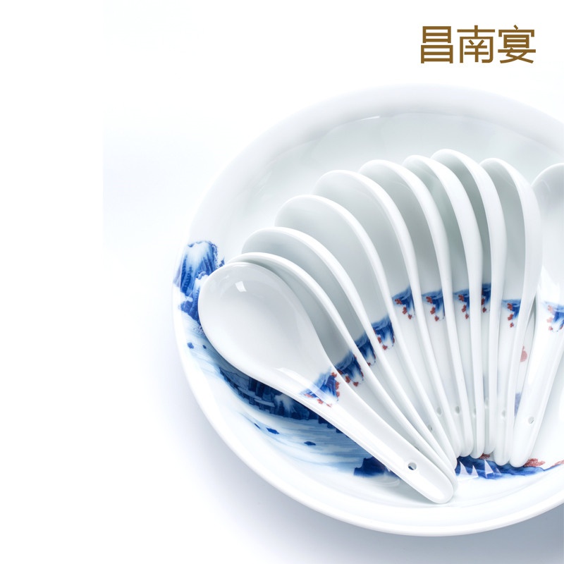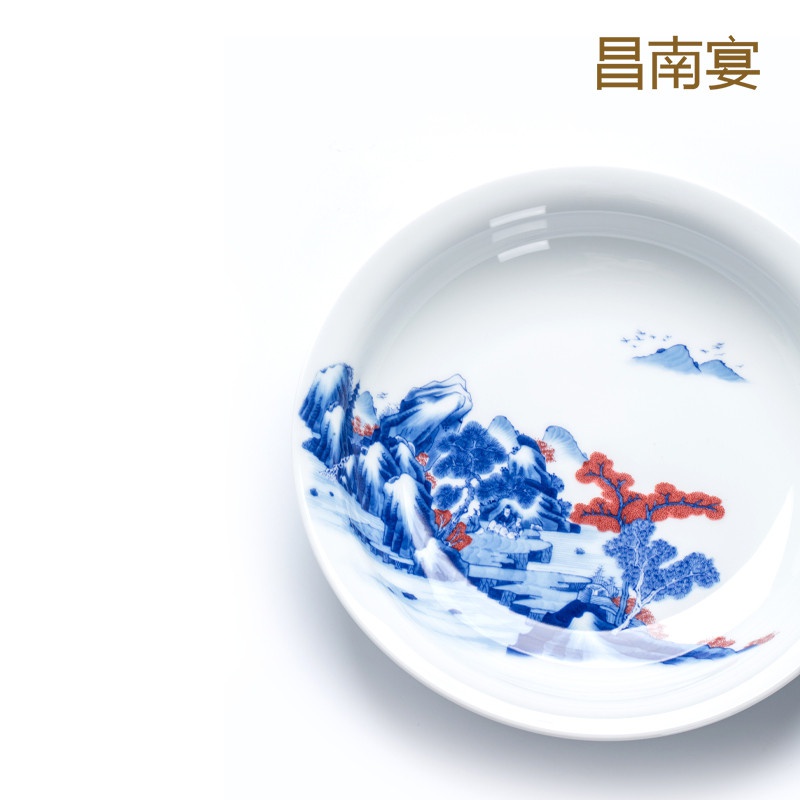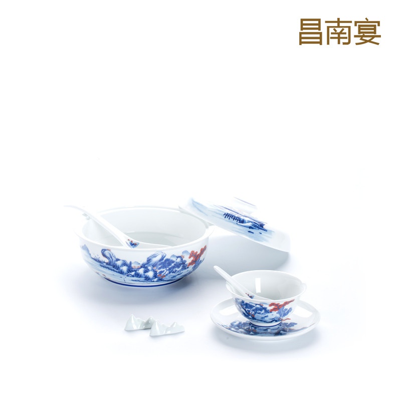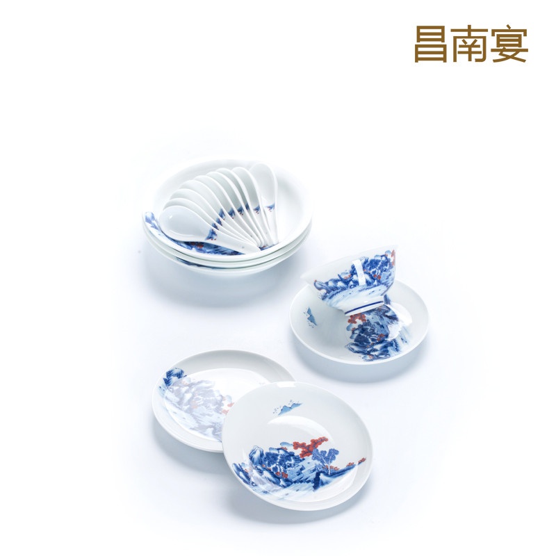 青花釉里紅山水圖53頭餐具套裝