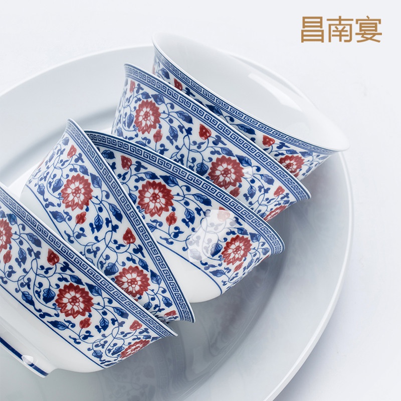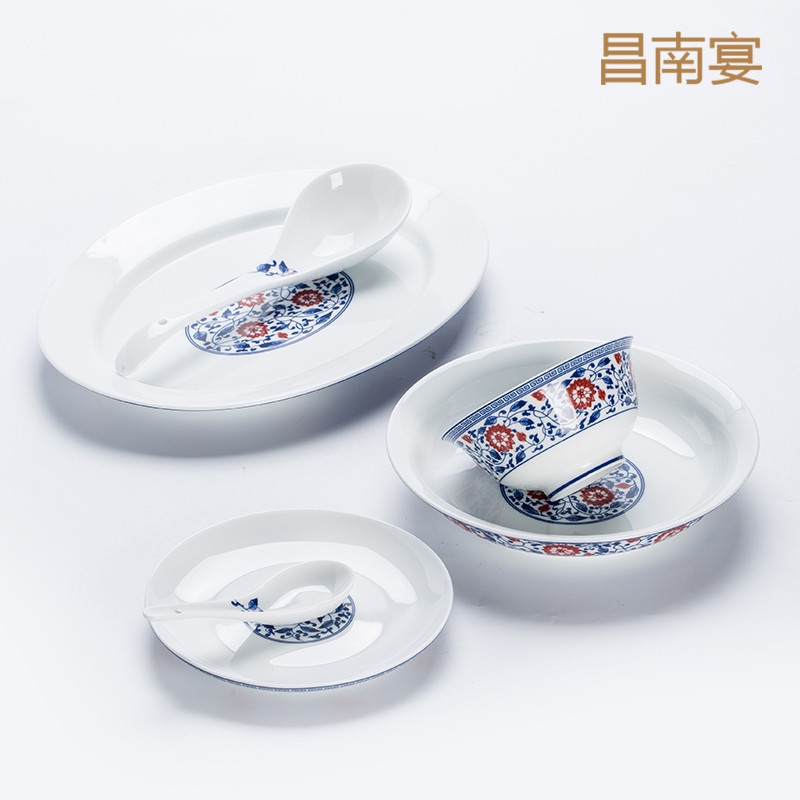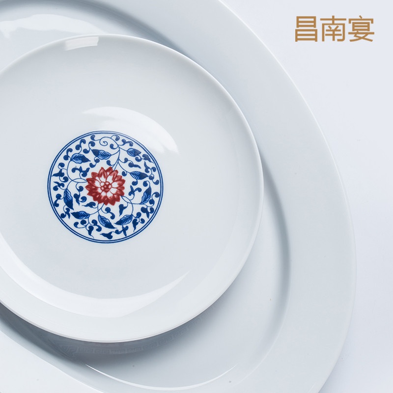 青花釉里紅纏枝蓮53頭餐具套裝