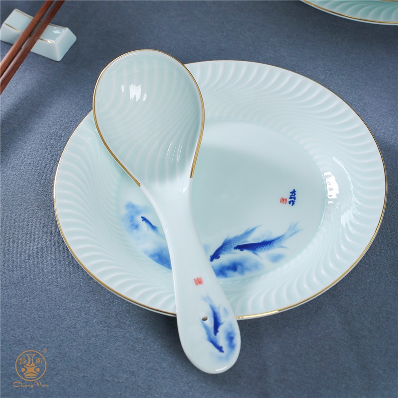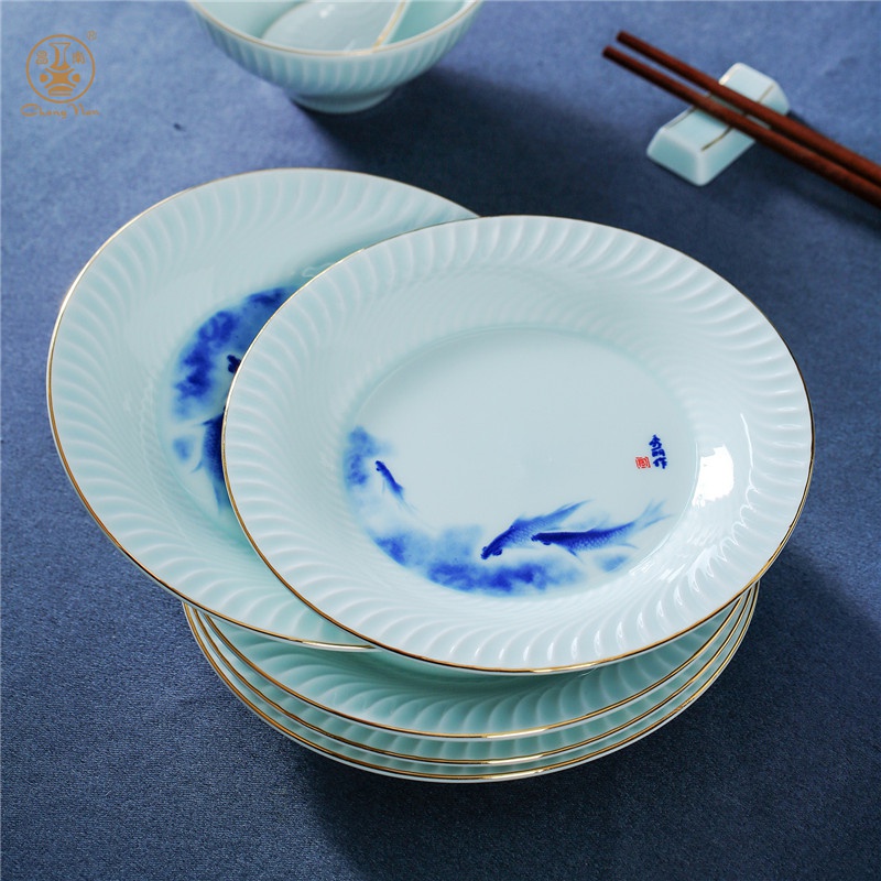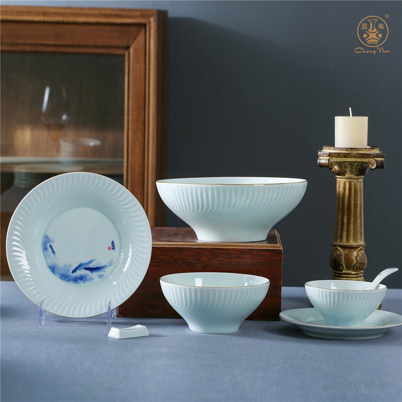 影青描金“年年有余”餐具