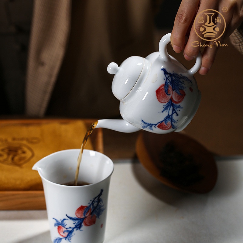 青花釉下彩“多福多壽”茶具套組