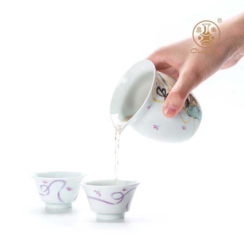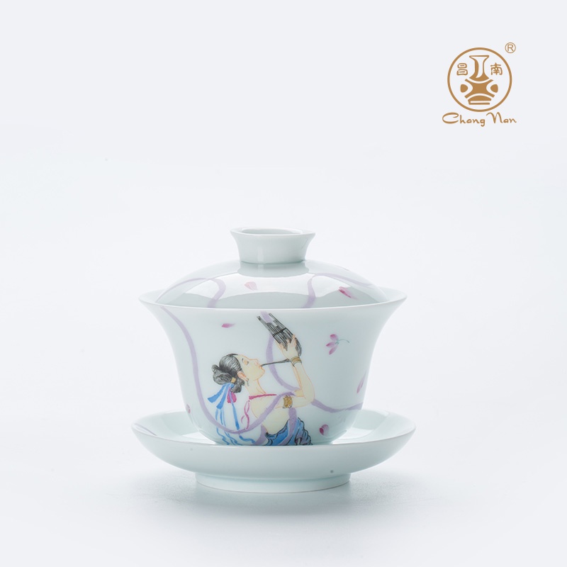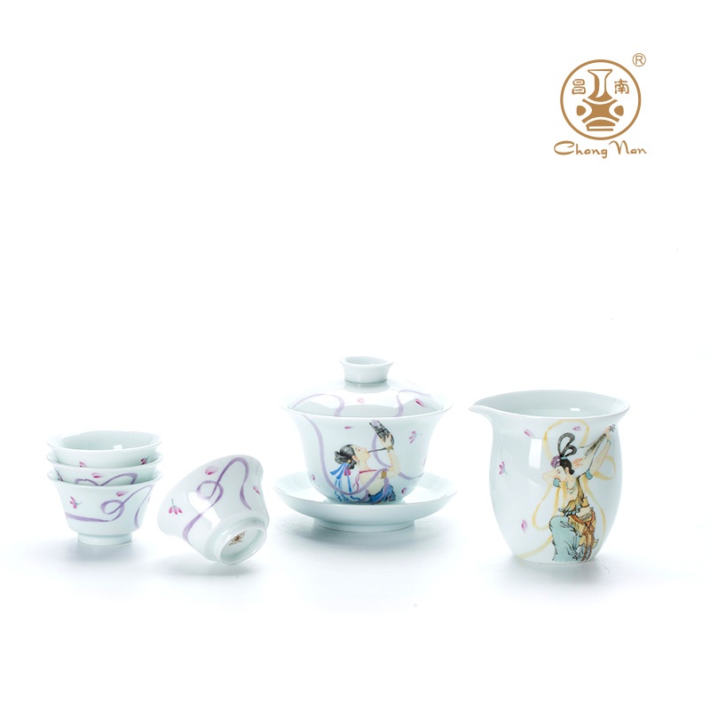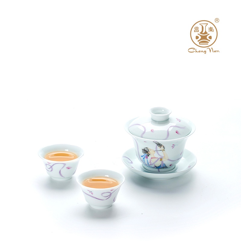 玉瓷手繪“聲聲慢”8頭蓋碗茶具套裝