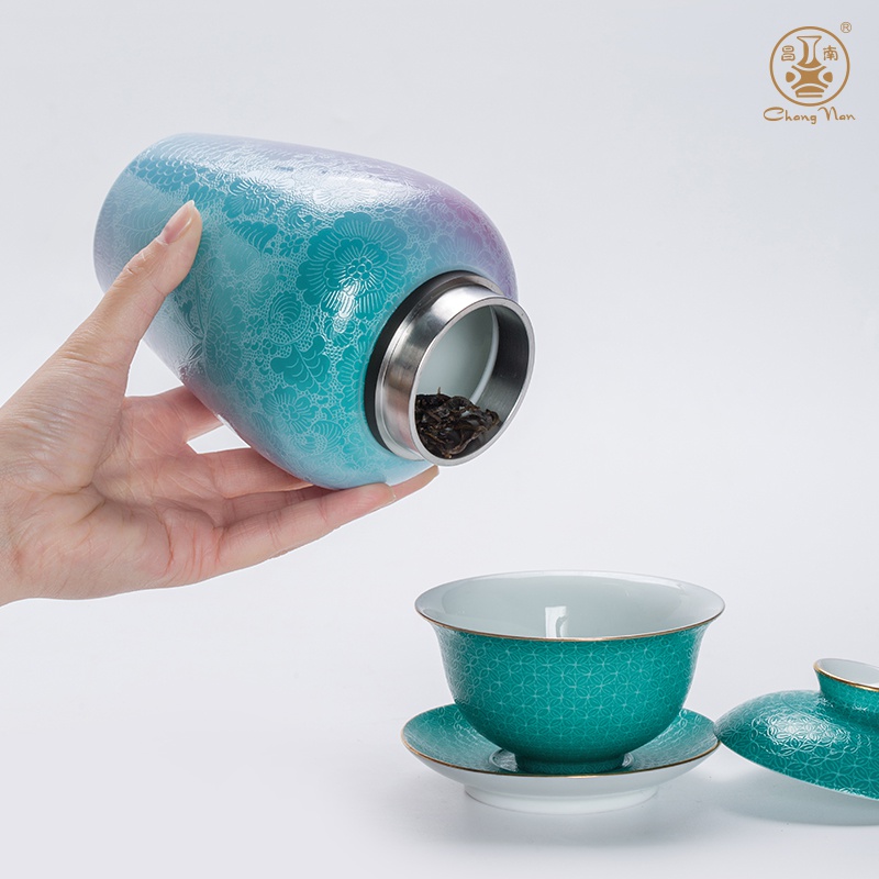扒花漸變“夢縈花隱”茶葉罐