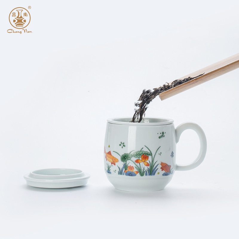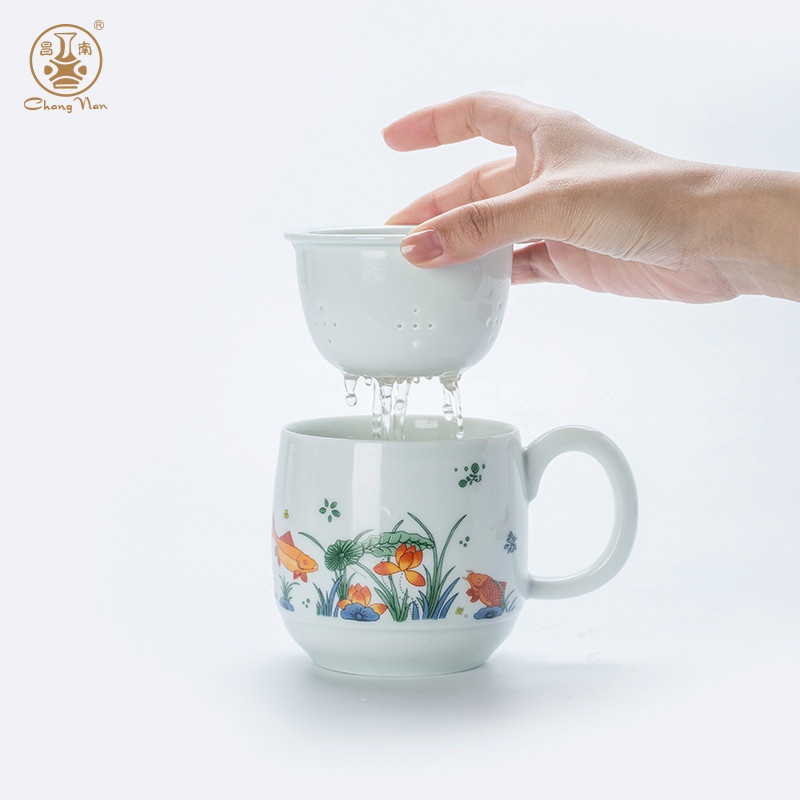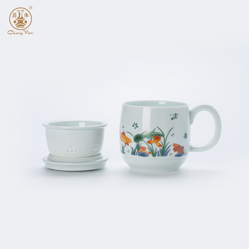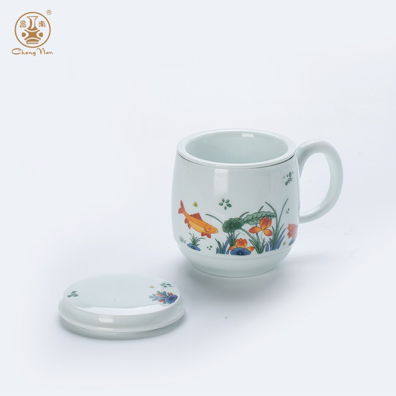 影青“魚(yú)戲”辦公杯