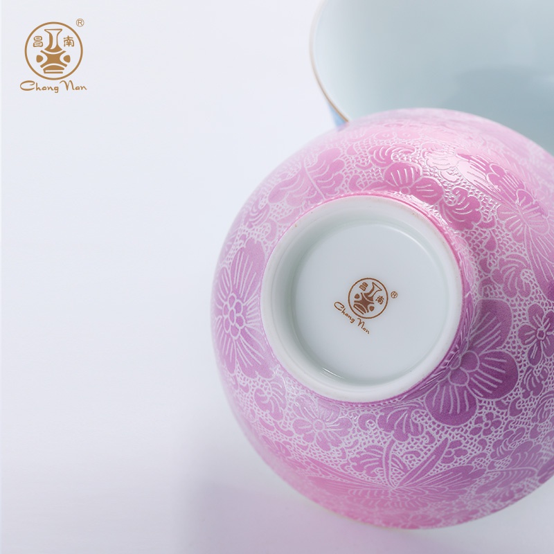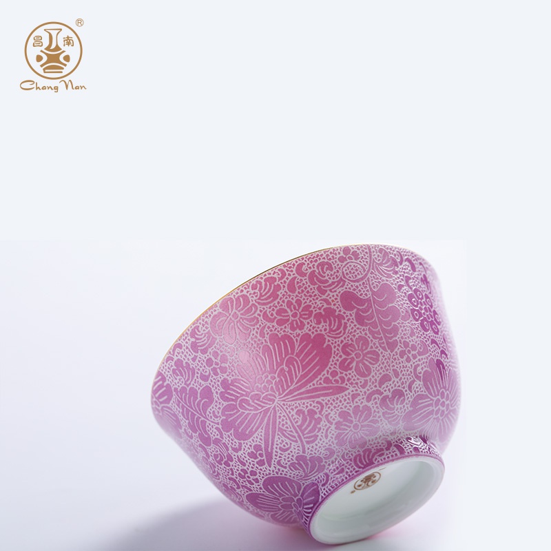 夢(mèng)縈花隱粉彩扒花香溢杯
