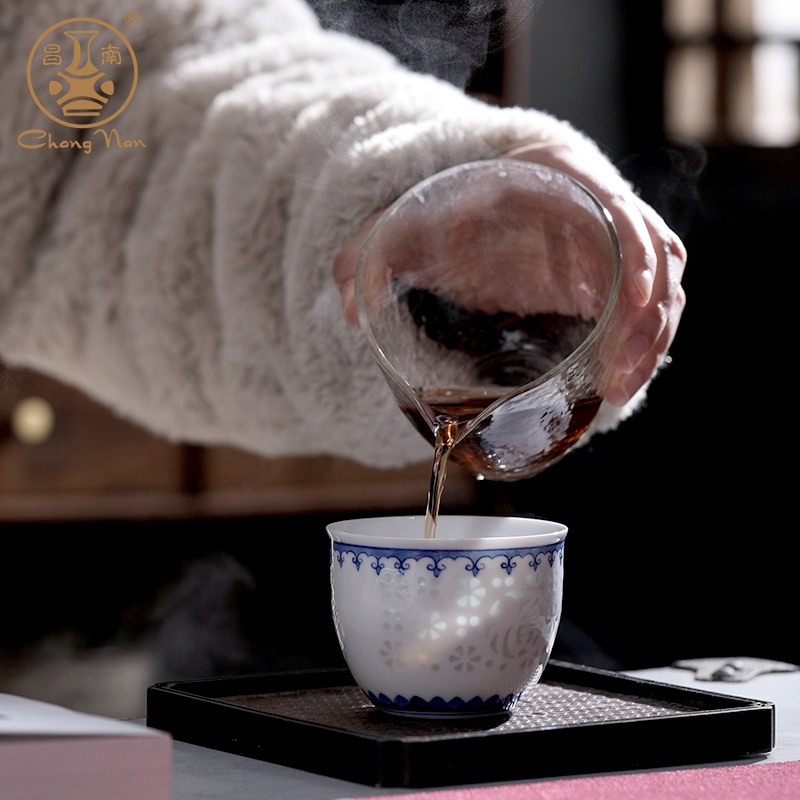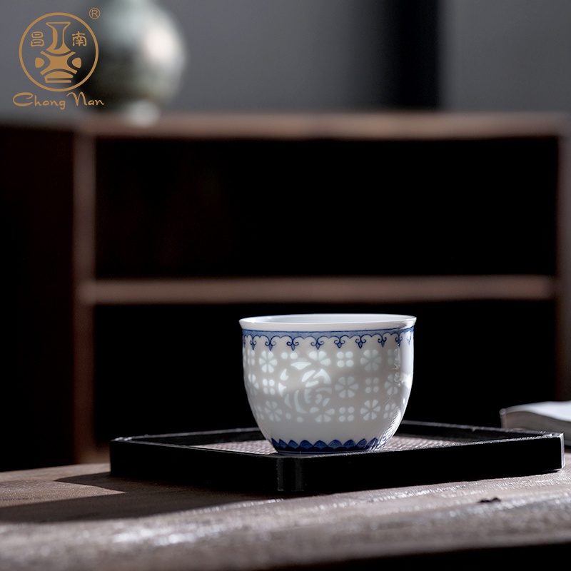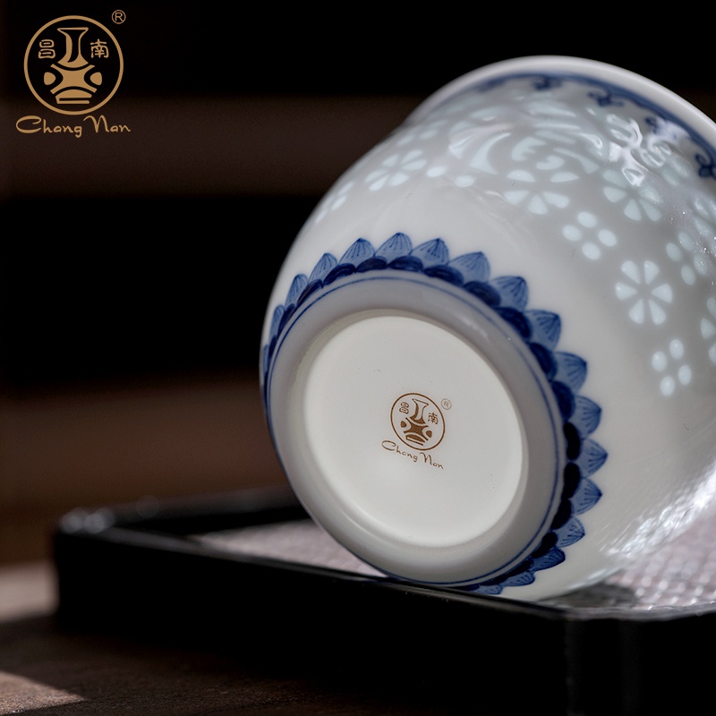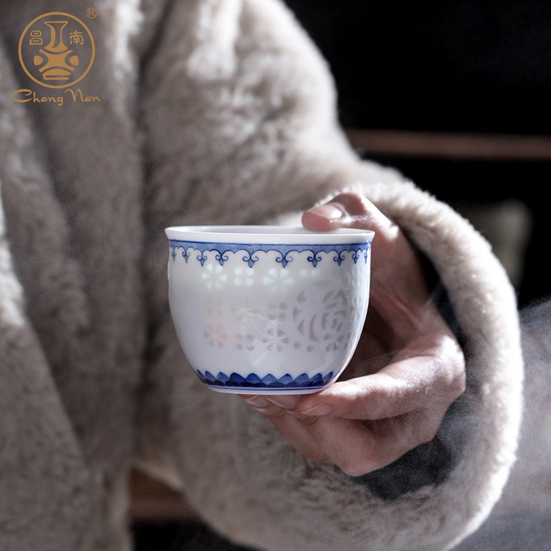 青花玲瓏“如意吉祥”品茗杯